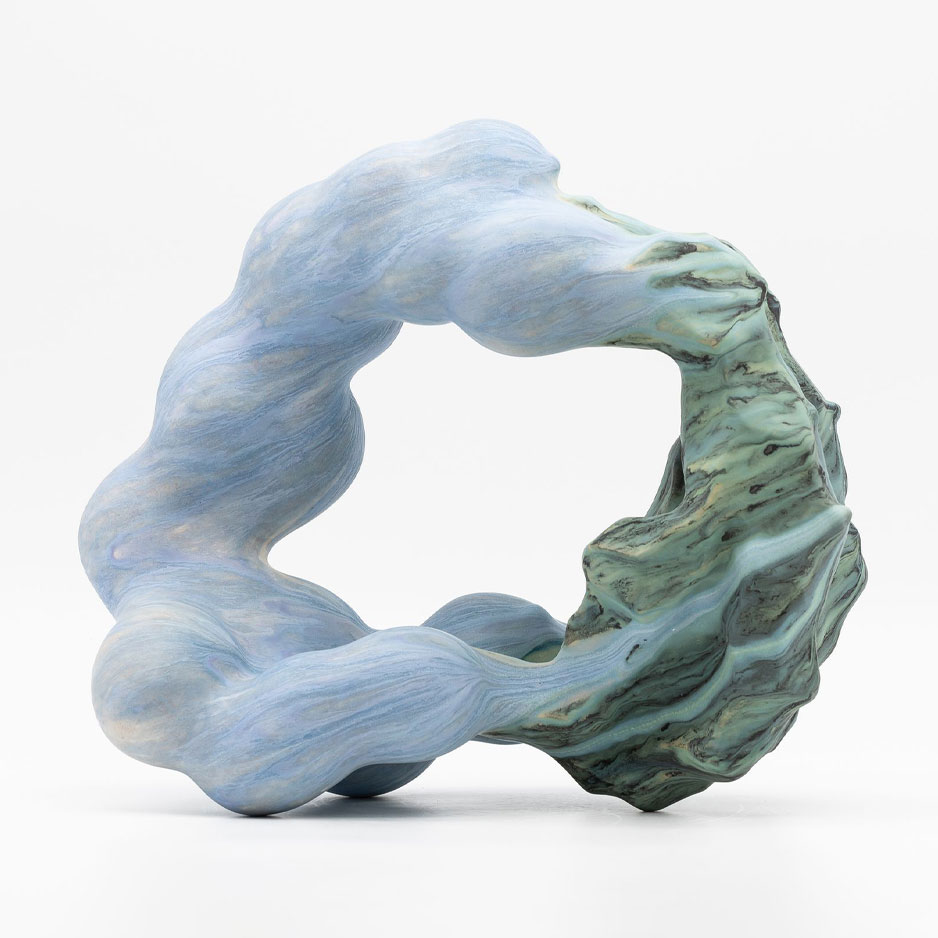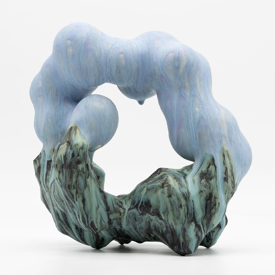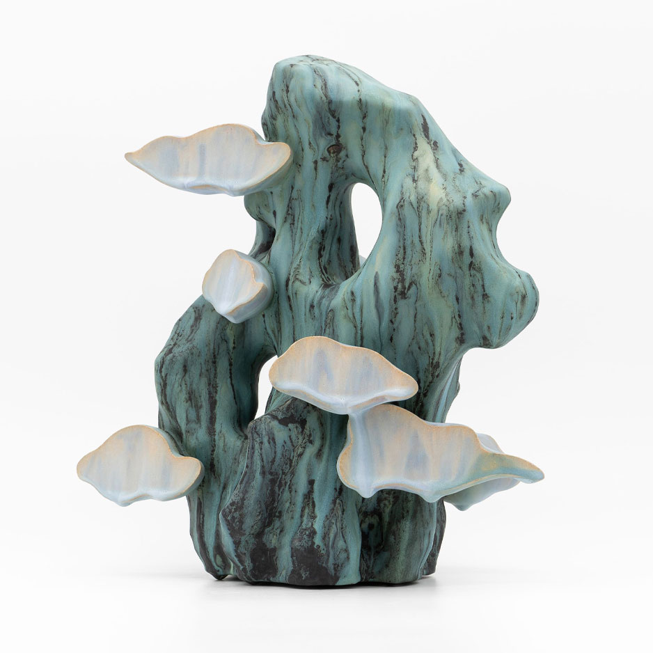 “Across Ten Thousand Mountains” is an exploration of nature, migration, identity, memory, and home. Born and raised in the small mountainous city of Guilin (桂林) in southern China, Jing Huang brought her art practice to Canada in 2013 and later to the U.S. in 2018. Amid the dislocation and ambiguity of being neither here nor there, Jing anchors herself by tracing her past and drawing inspiration from early memories of her background and hometown’s landscape after a long absence. Her ceramic forms explore the unknown scenery between her past and present, reflecting the flow of landscape and atmosphere in changing environments. These works embody the nature of her diasporic experience, living and moving among different cultures and languages. They transcend mere representation of her hometown or any specific location; rather, they seek a deeper understanding of her identity and experience in the world.