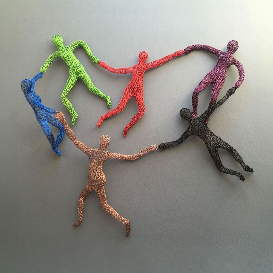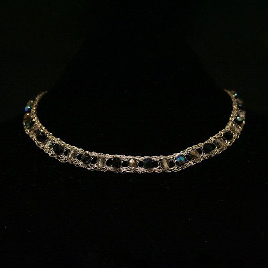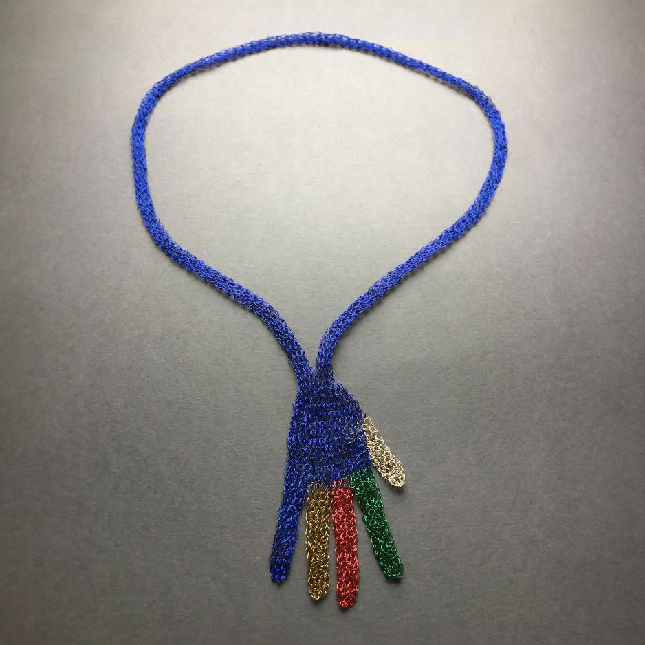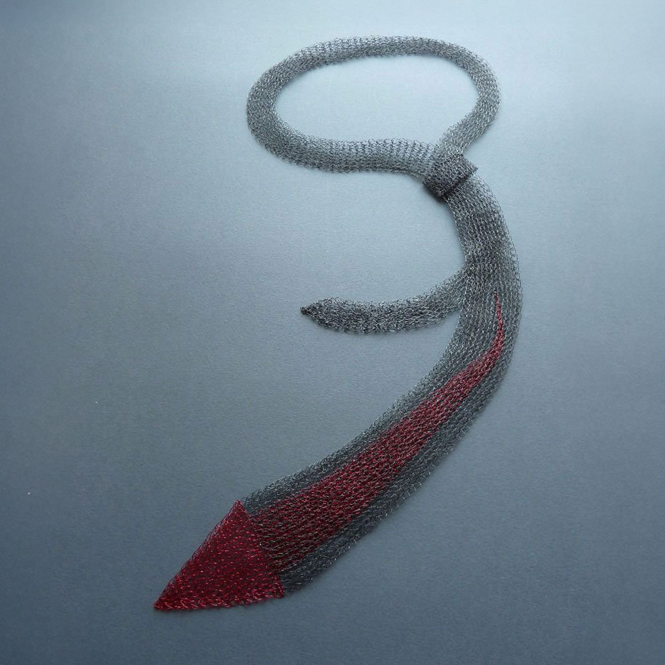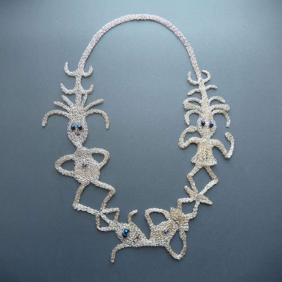 Blanka Šperková began to experiment with wire in 1970. Inspired by traditional wire techniques used by Slovak tinkers, she has worked extensively with wire since 1975. She does not, however, use traditional tinker techniques. She has created a unique technique of finger knitting, which uses neither knitting needles nor other tools. Using a basic loop, she creates both free sculptures and jewellery. Early in her career she created figurative forms, based on the human body and animal motifs, but these gradually evolved into more abstract forms, always based on some distinct meaning. She has applied her wire techniques to her work in animated films and graphics. She often manipulates the airy transparency of knitted wire to create within forms that demonstrate an expressive interplay between light and shadow.
