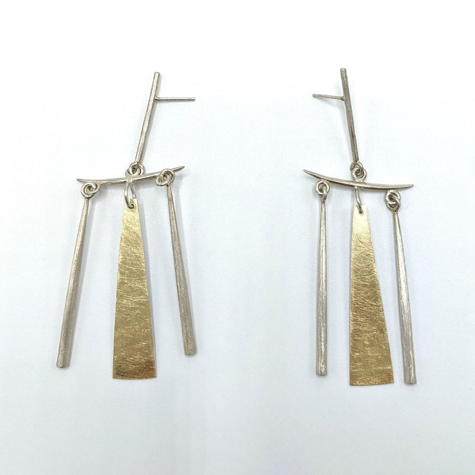 Didi’s pieces are hand fabricated in sterling silver and 18kt bi-metal. “Hand fabricating sculptural jewelry, building from sheet metal, seems to be becoming an outdated approach. Many alternative materials are being used in studio jewelry today. I still love working in metal and my personal touch can be felt in each piece. I accent areas of the body with sculptural forms that complement or define the space. The relationship between the piece and the wearer is an intimate and personal one, conveying one’s sense of self and exuding inner strength and balance. Jewelry is our personal “armor”, anchoring us and reflecting our confidence with grace. Looking back to ancient culture and architecture, I look for the essence of form: the spirit, the balance, and the elemental. It is important for the piece to respond to the landscape of the body. Body ornamentation is a sensual experience- it is felt and moves when worn.”