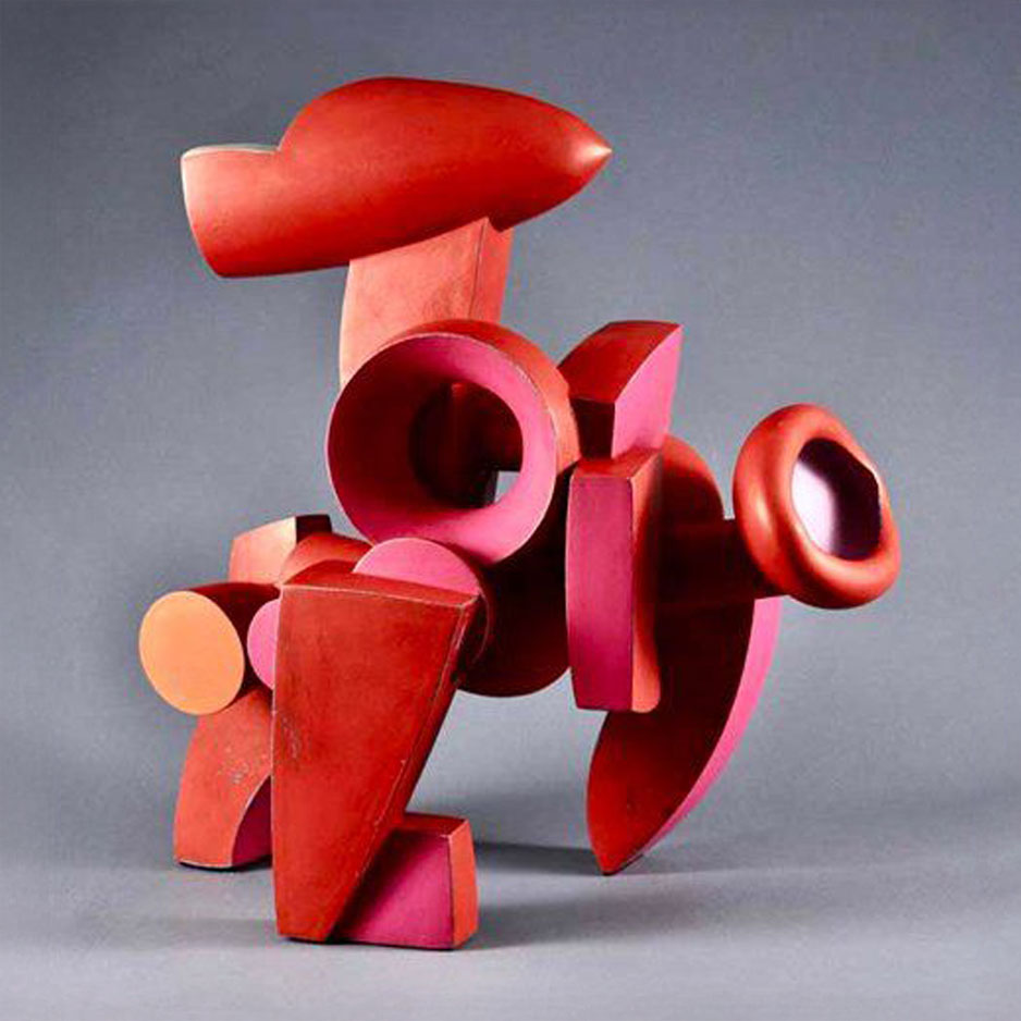 “My sculpture is based on vessel forms but transformed by scale and complexity into architectonic forms with industrial-tool references” states Herren. “My primary working medium is ceramics combined with wood-working in the fashioning of stands and tables. I aspire to attain in my work the wedding of the prosaic yet intimate qualities of pottery to the more assertive power of industrial tools, both regulated to an age more closely attuned to human labor and striving.”