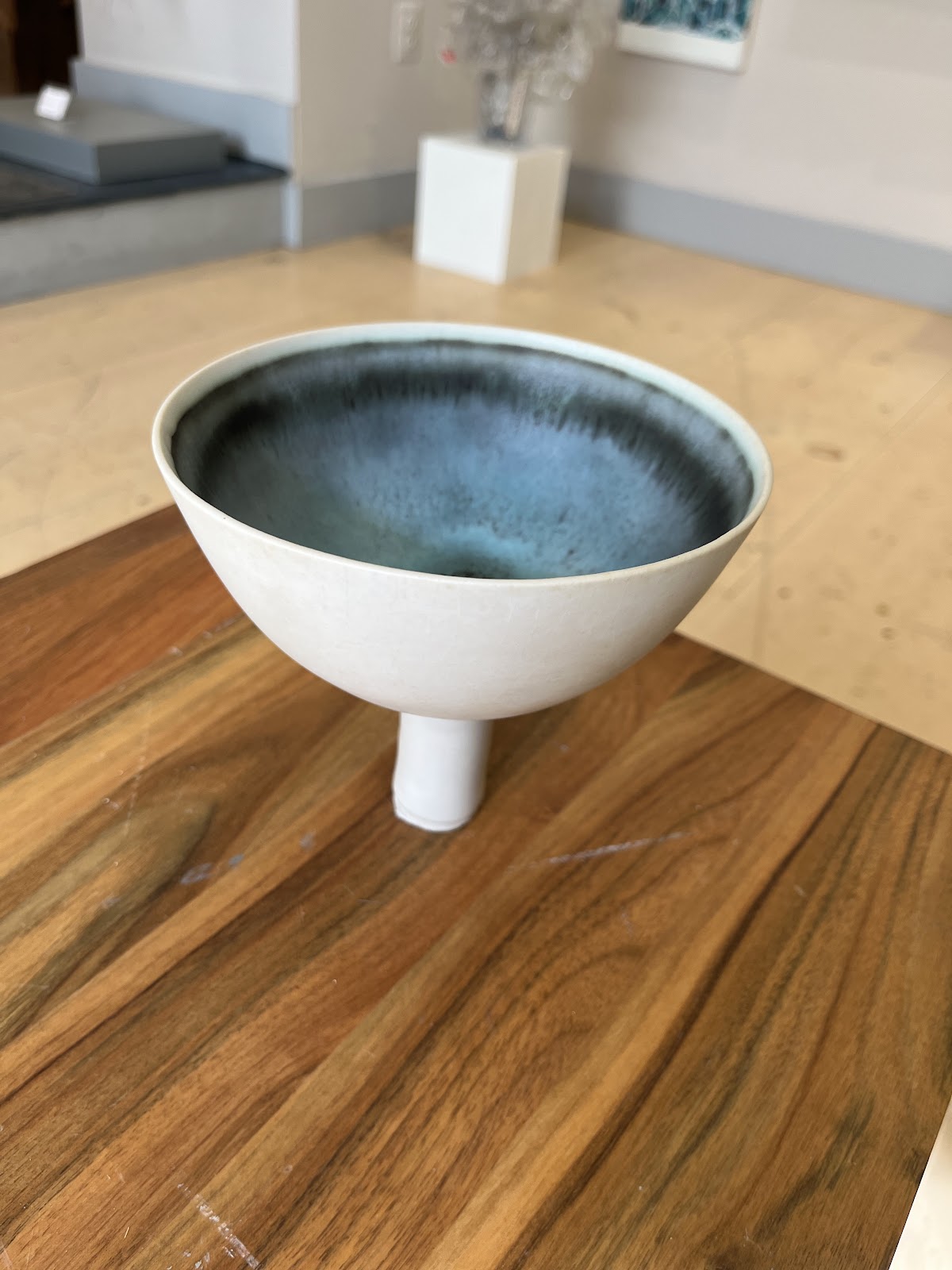 Porcelain, unglazed polished; Blue interior 5" Tall
