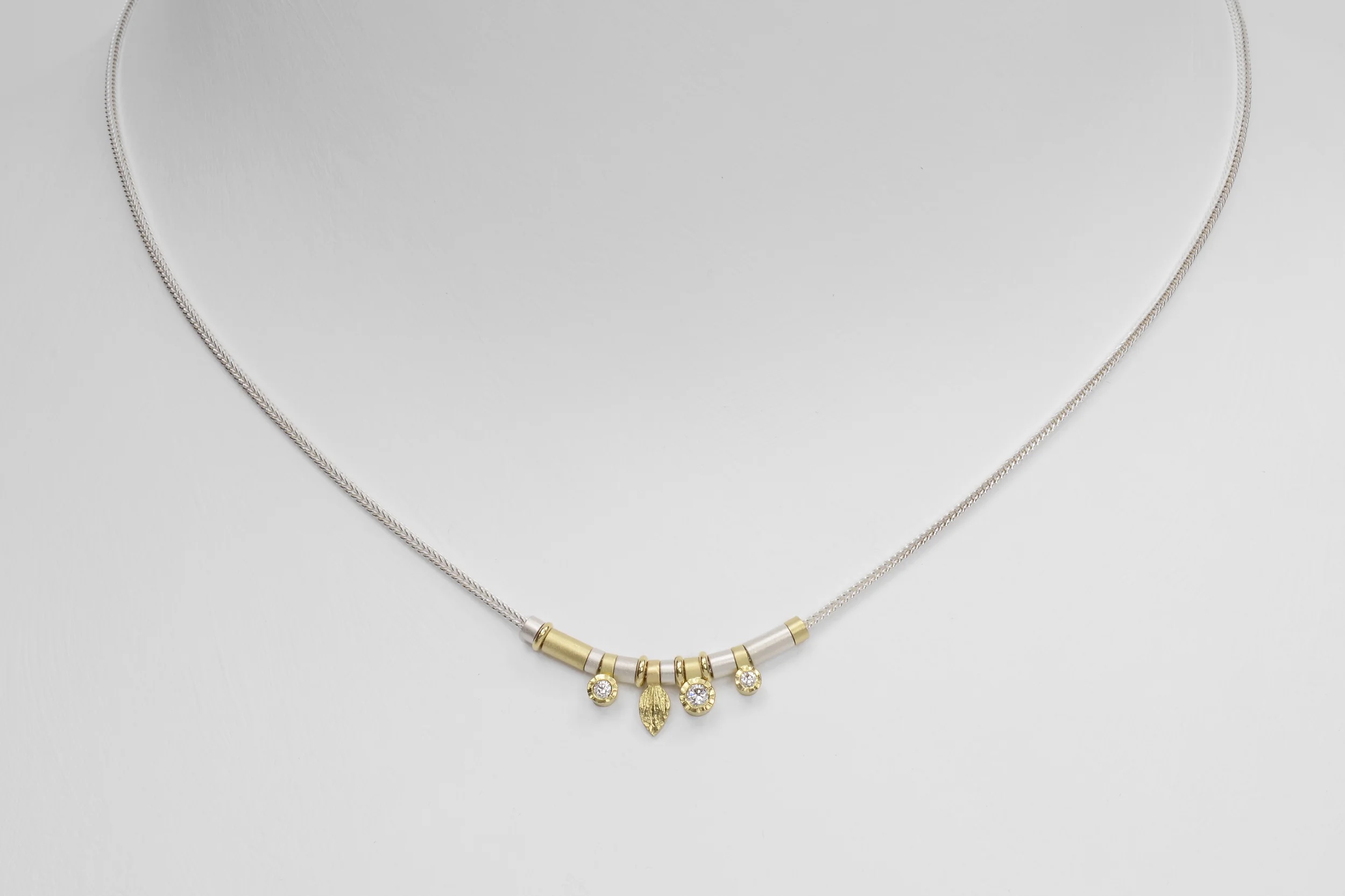 3 Diamond Necklace | Oxidized sterling silver, 18k, .10ct tw gh/vs diamonds