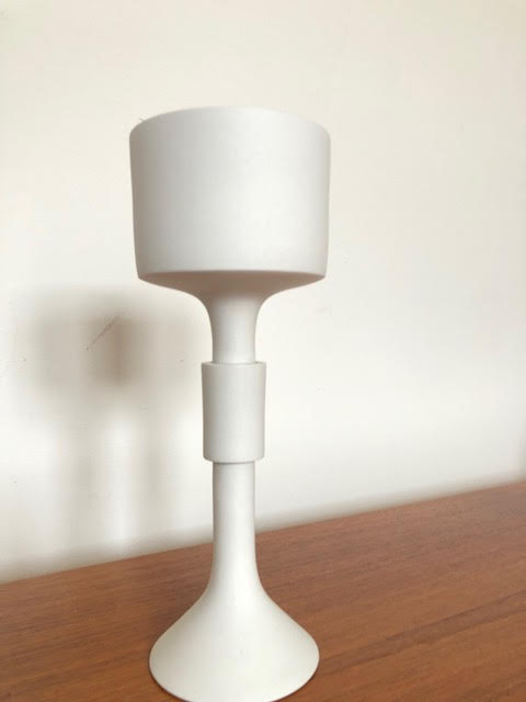 Porcelain, unglazed polished; White unglazed exterior, blue interior 9.5" Tall