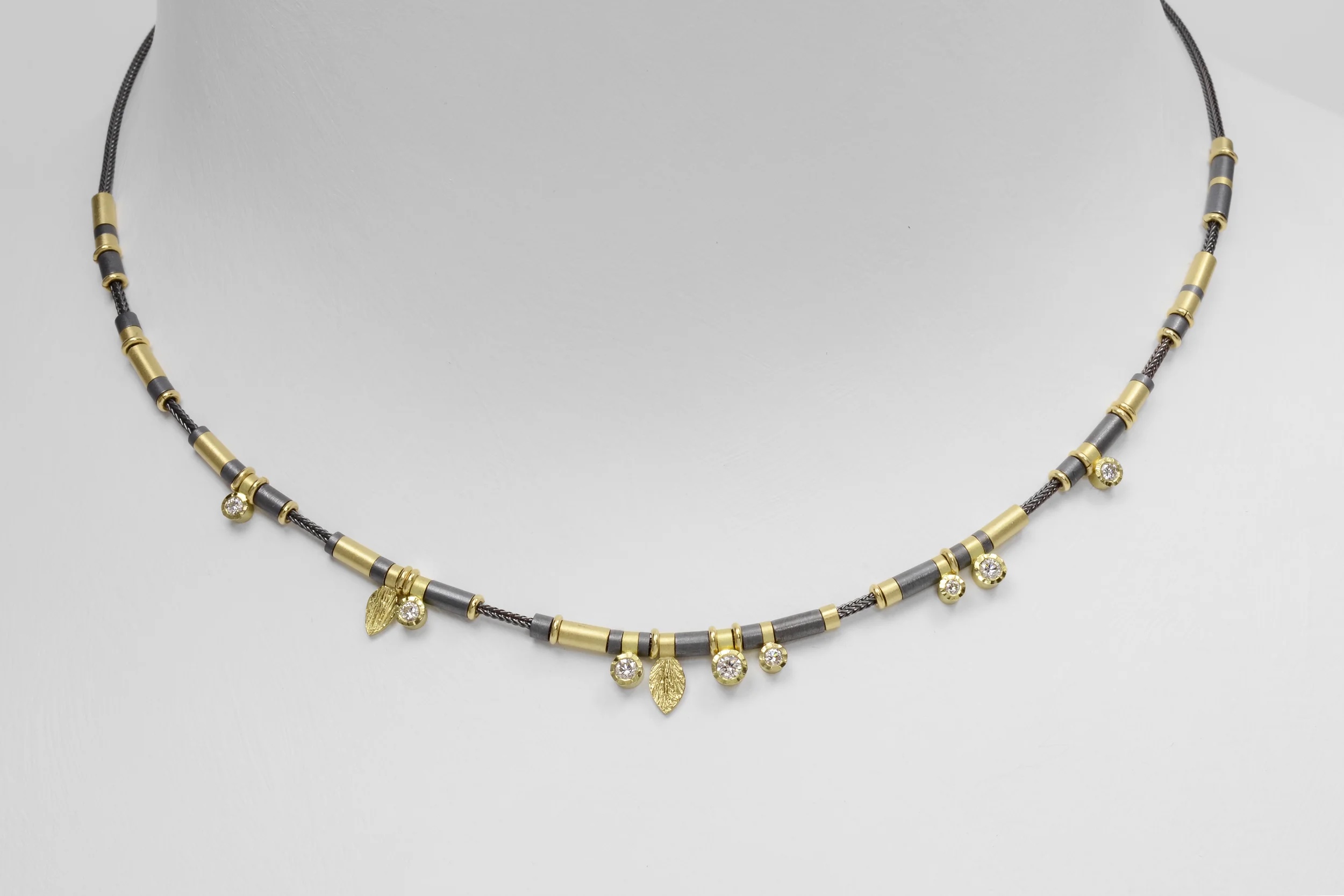 Necklace | Oxidized sterling silver, 18k, .33ct gh/vs diamonds