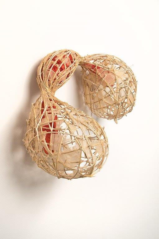 Rattan reed, encaustic wax, dressmaker's pattern tissue, archival adhesive, cotton string