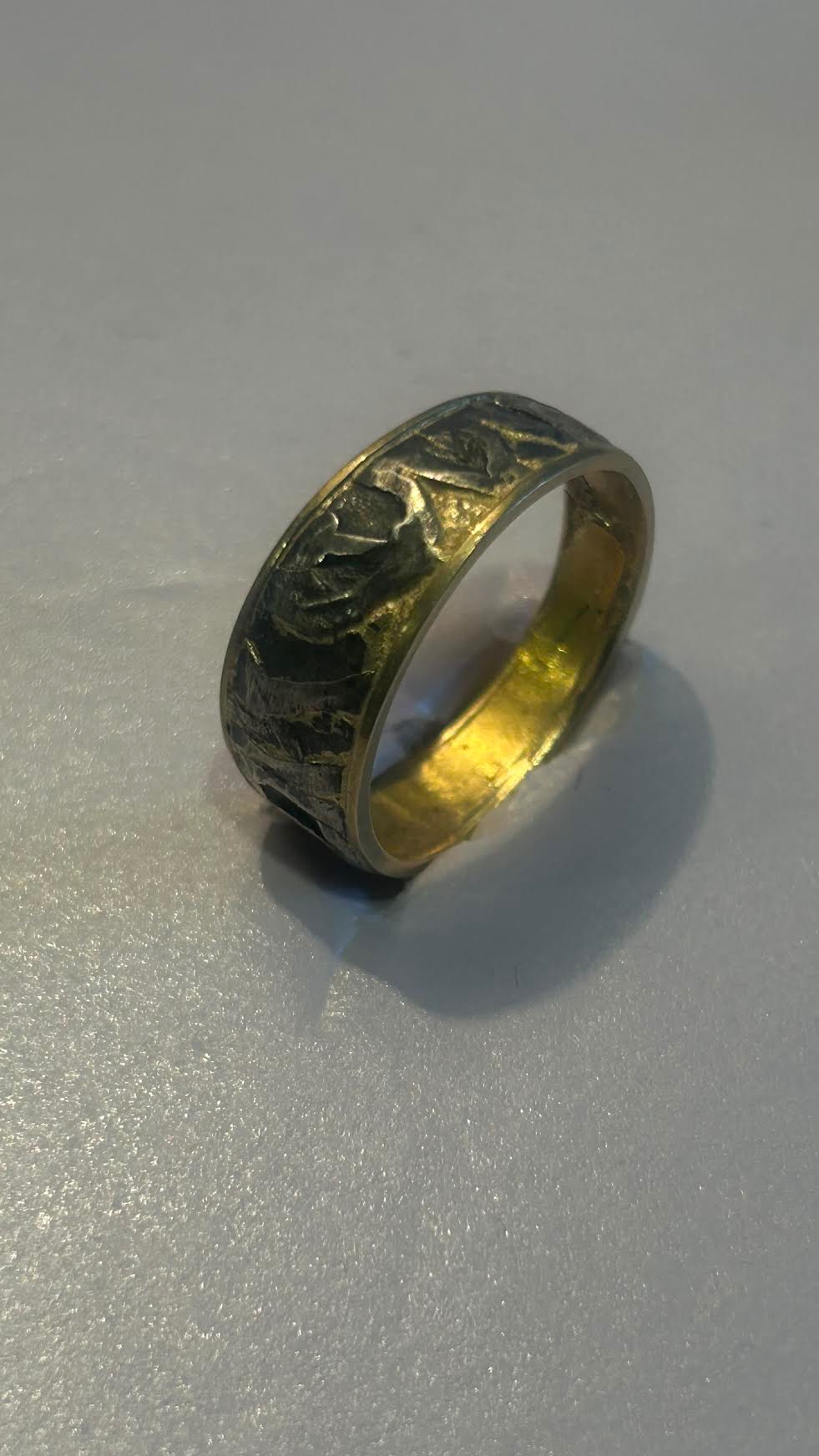 fused layers of 24, 22, 18k s/s framed in 18k pale yellow gold | Size 10