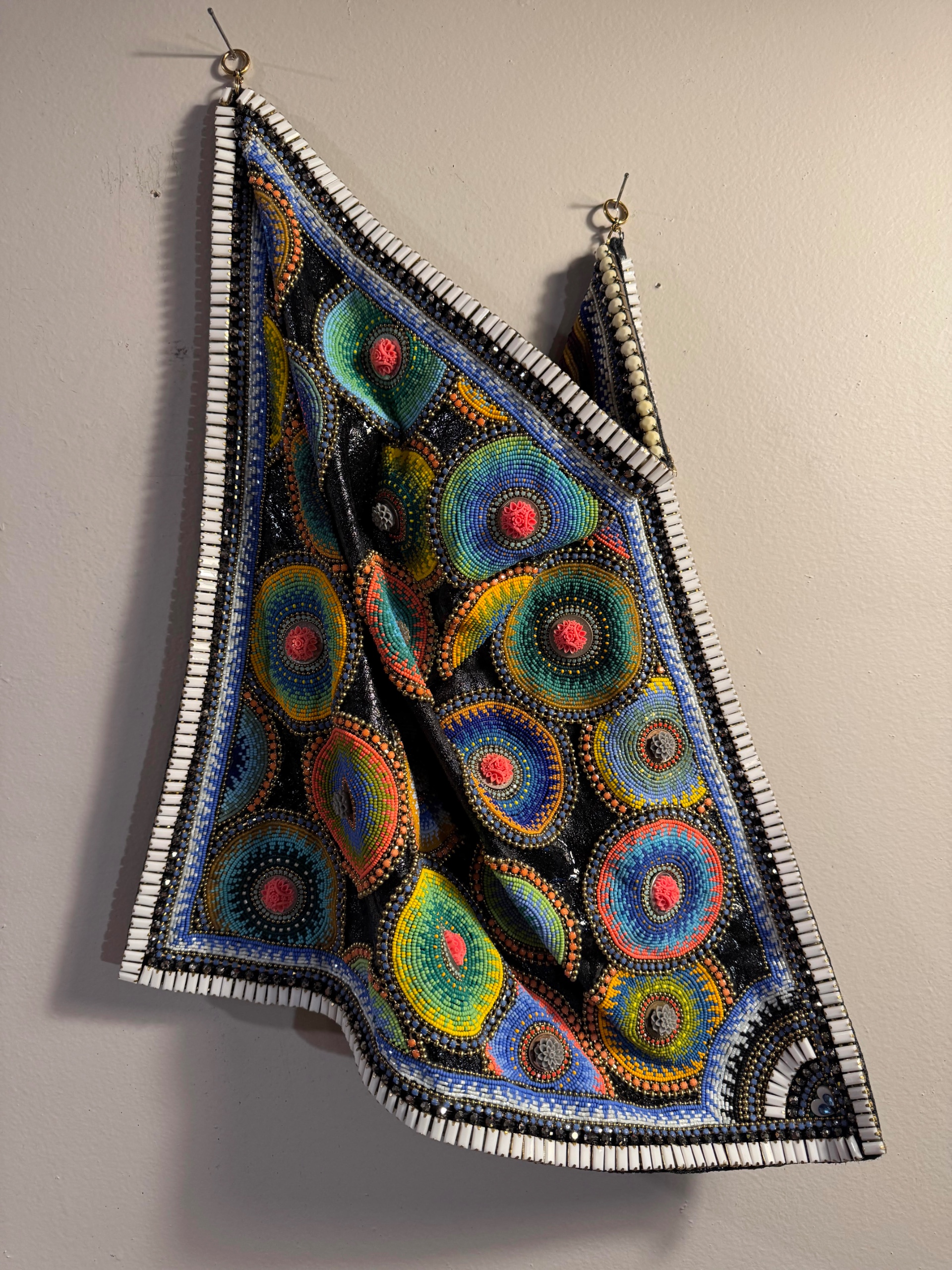 2026 | Cloth, Czech glass beads, ball chain, cup chain. coins, vintage pressed glass | 23" x 16" x 4"