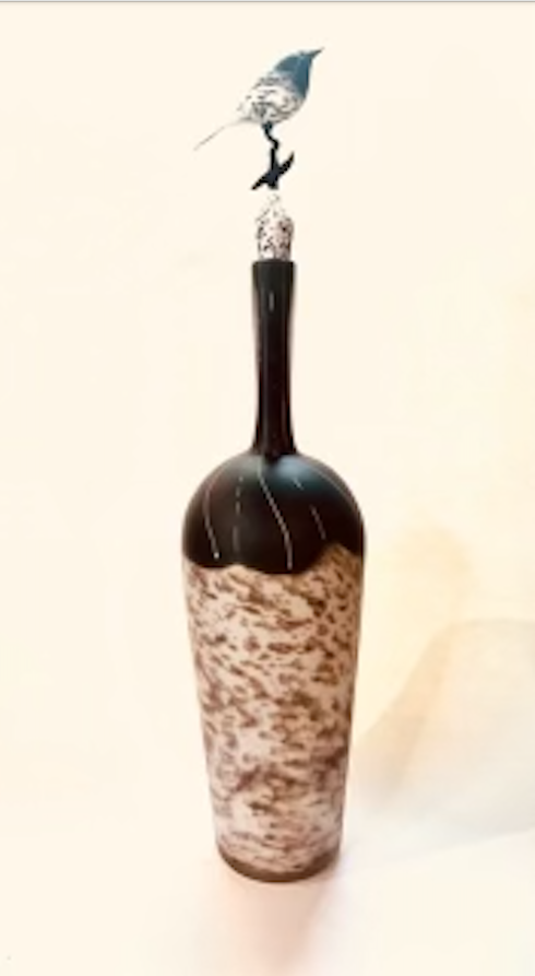Flamedrawn hot glass, flameworked glass, sandblasted & acid-etched