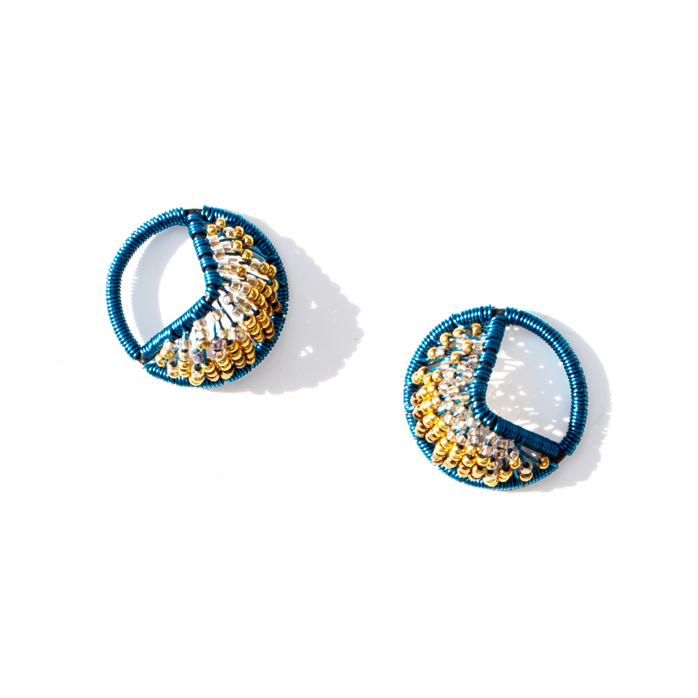 2025 | steel, wire, glass beads; sterling silver posts | 0.785" x 0.785" x 0.375"