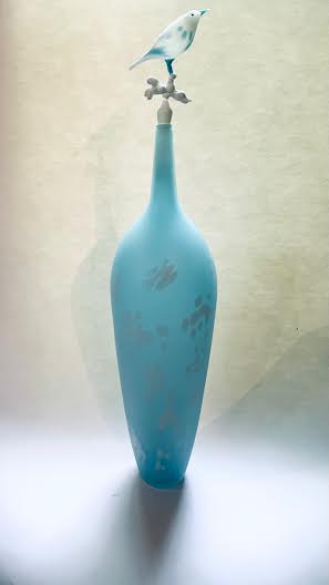 Flamedrawn hot glass, flameworked glass, sandblasted & acid-etched