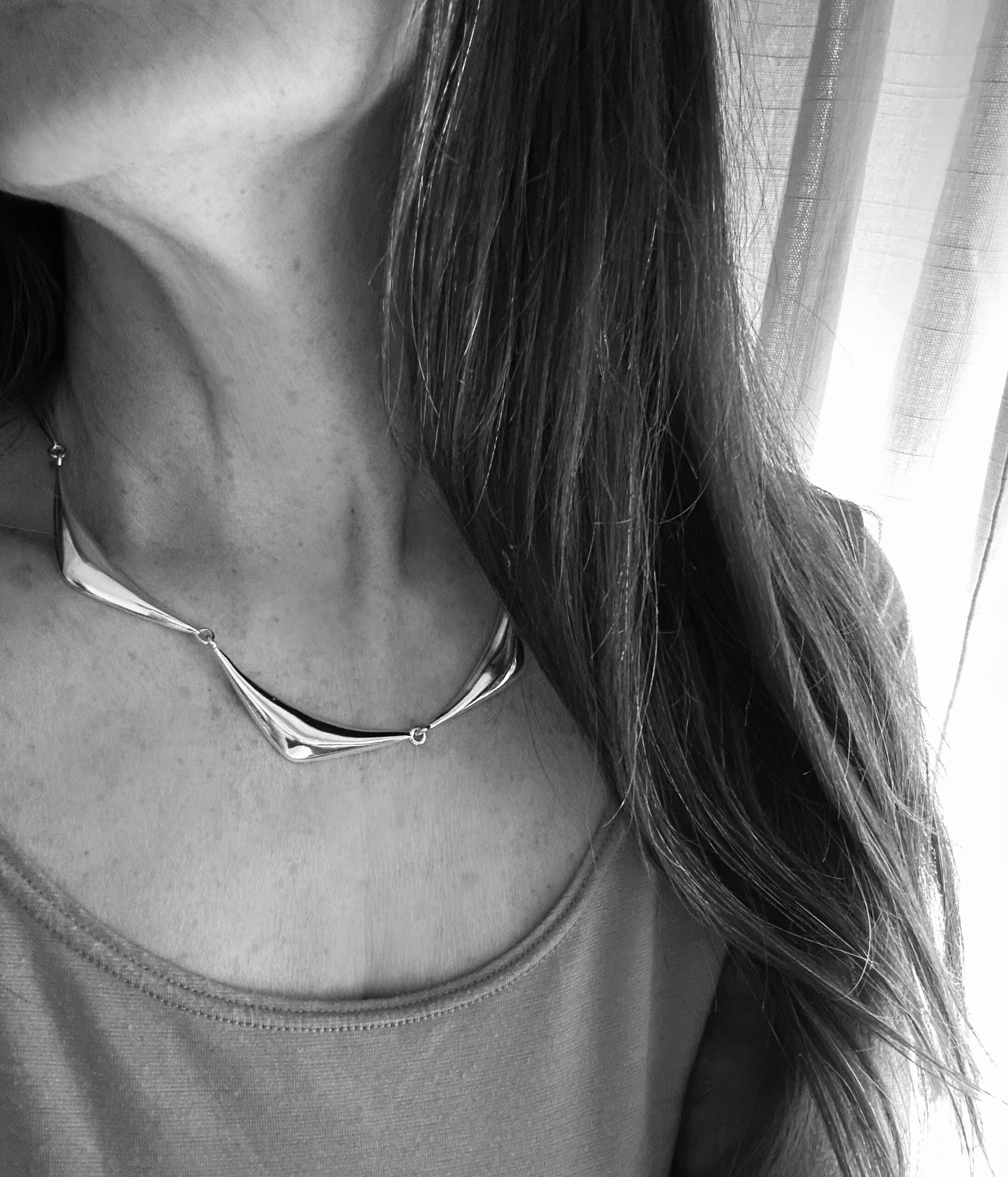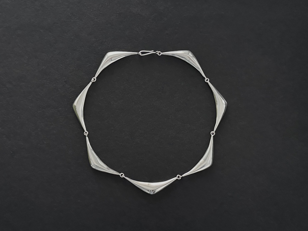 Cast and fabricated polished sterling silver, approx 16 3/4″ long