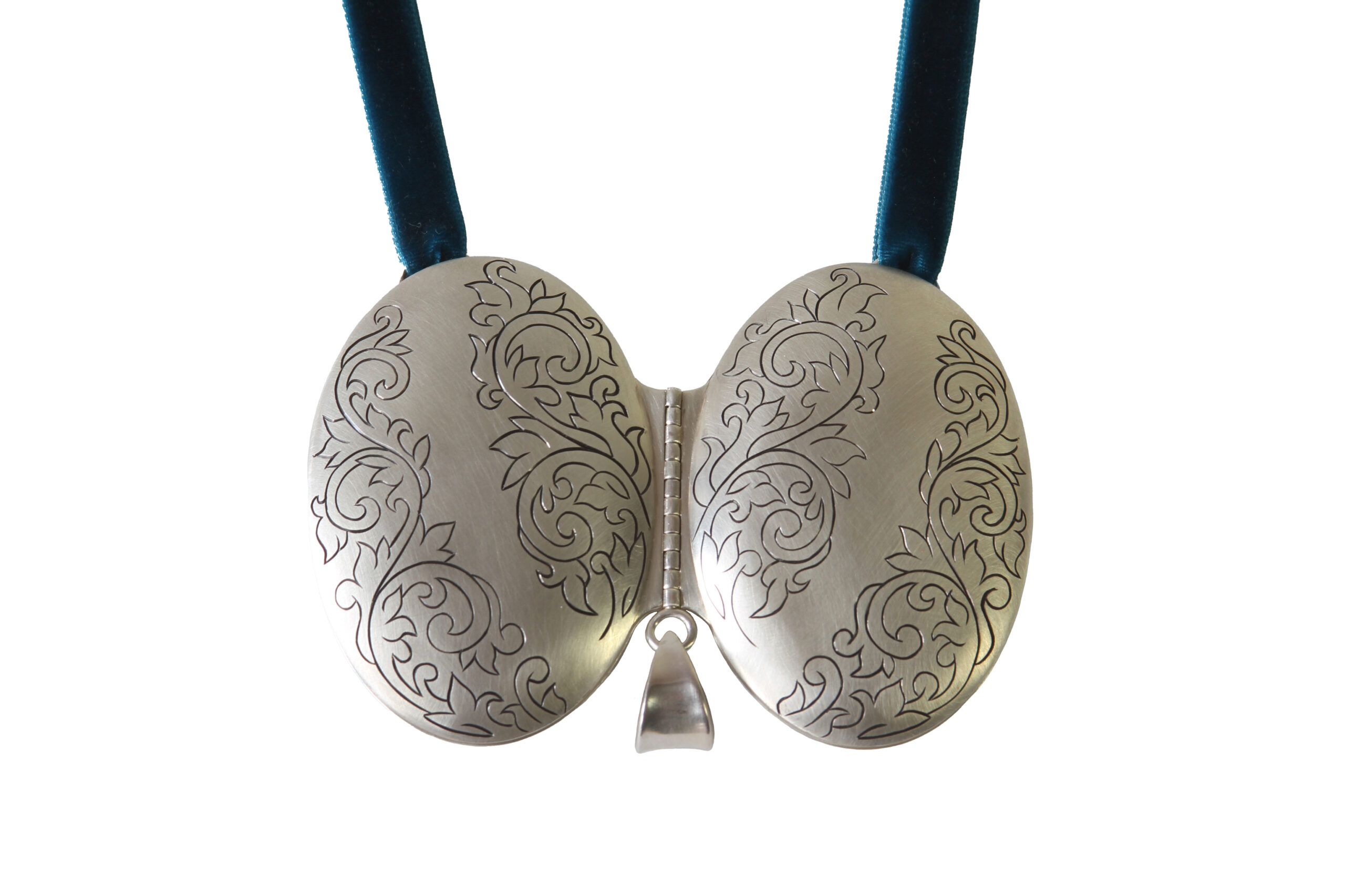 7 x 10 x 1.5 cm | sterling silver, velvet fabric, velvet ribbon