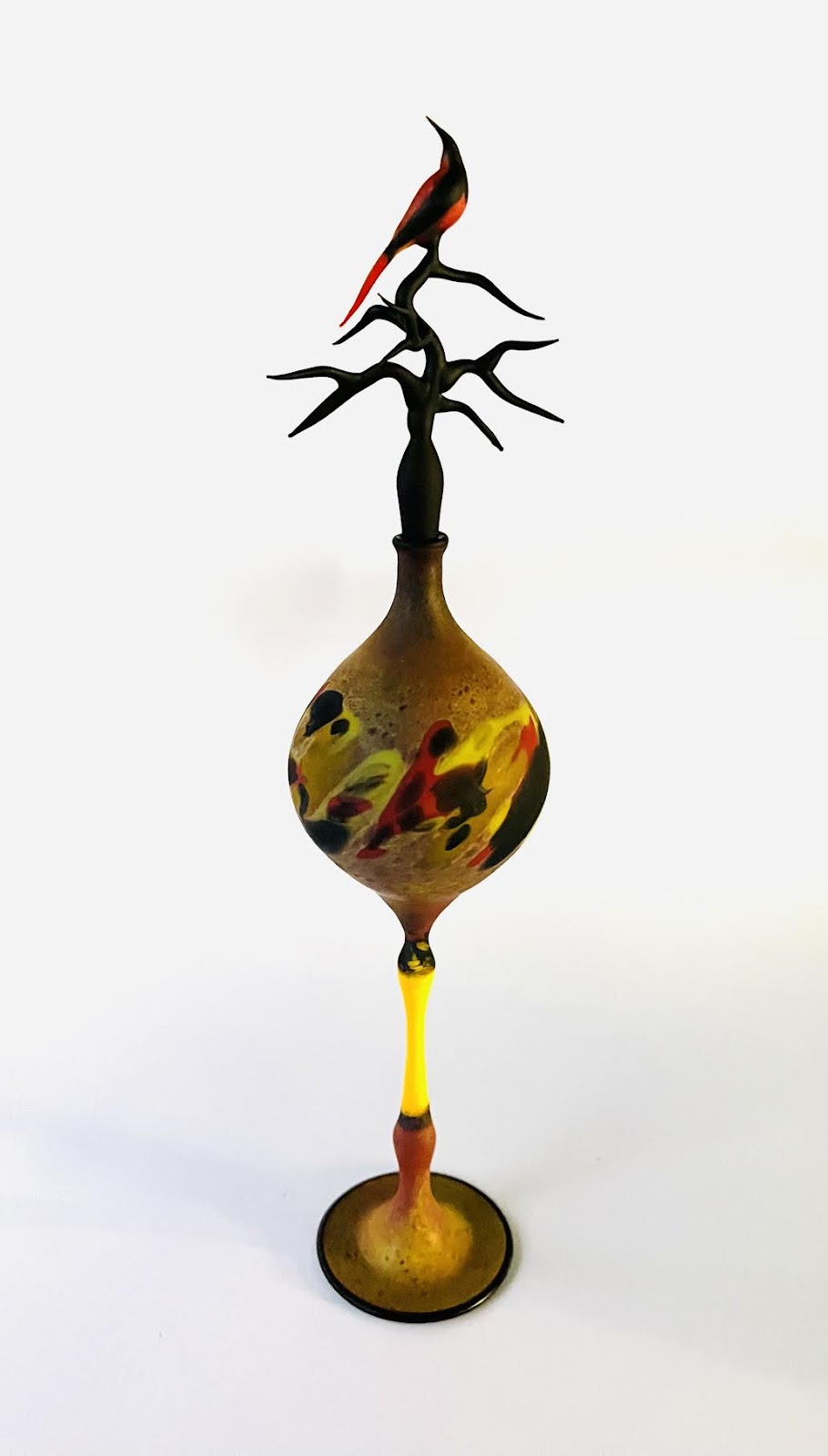 Flameworked glass & acid-etched | oranges, yellow, red, green & black