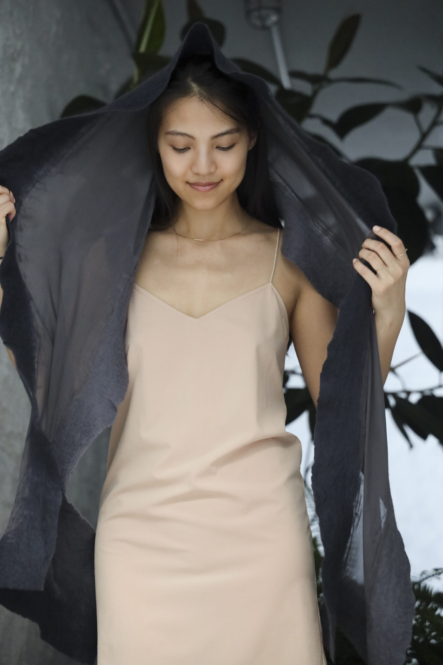 Silk fabric with merino wool trim | Approximately 15"W x 83"L
