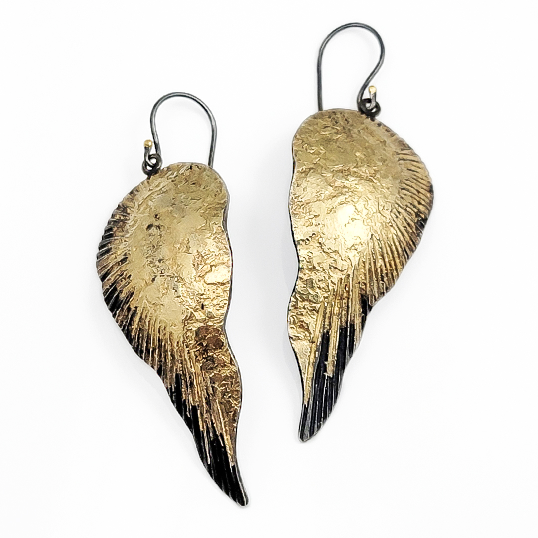 Oxidized sterling silver, 18k yellow gold | 3/4"(w) x 2 1/2"(l)