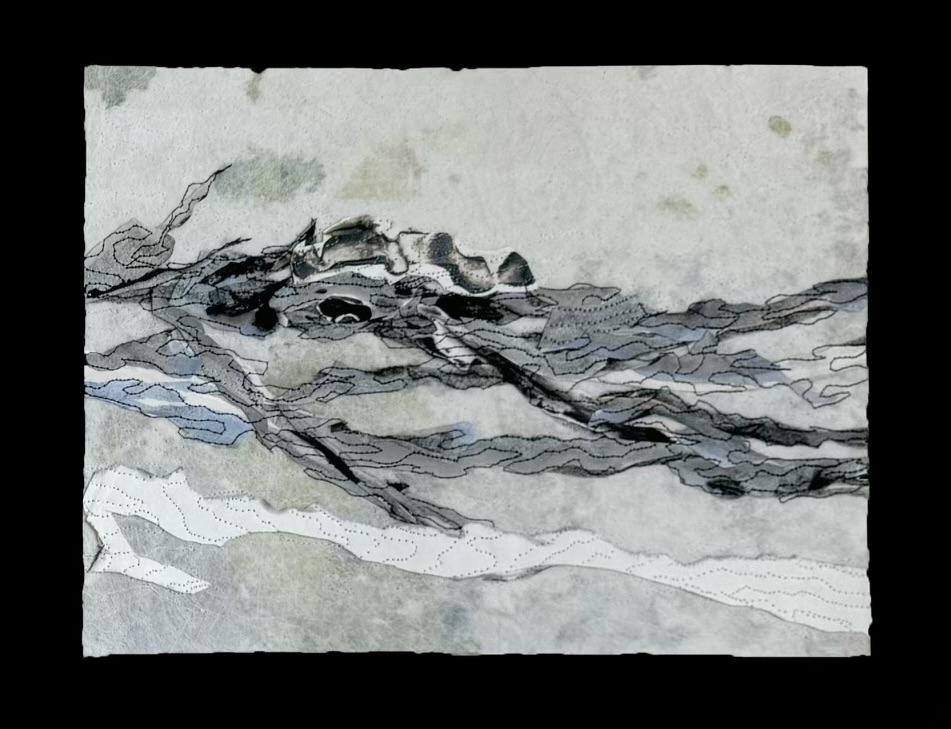 Non-woven synthetic fabric with acrylic paint, machine stitched