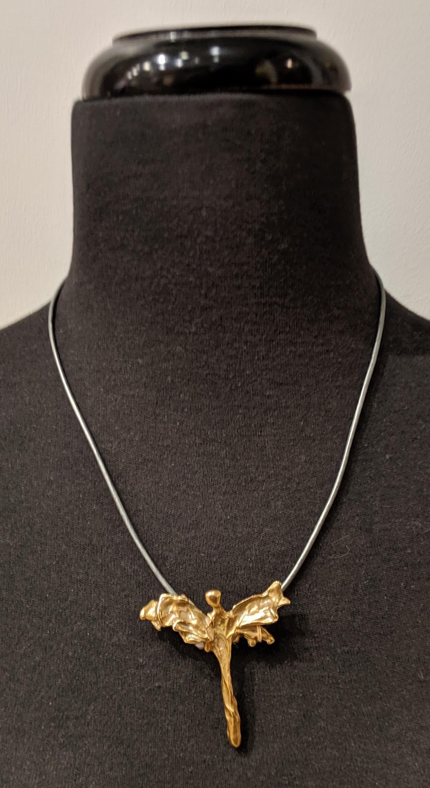 Large Bronze High Heart Angel: Gunmetal Leather, Bronze Clasp.