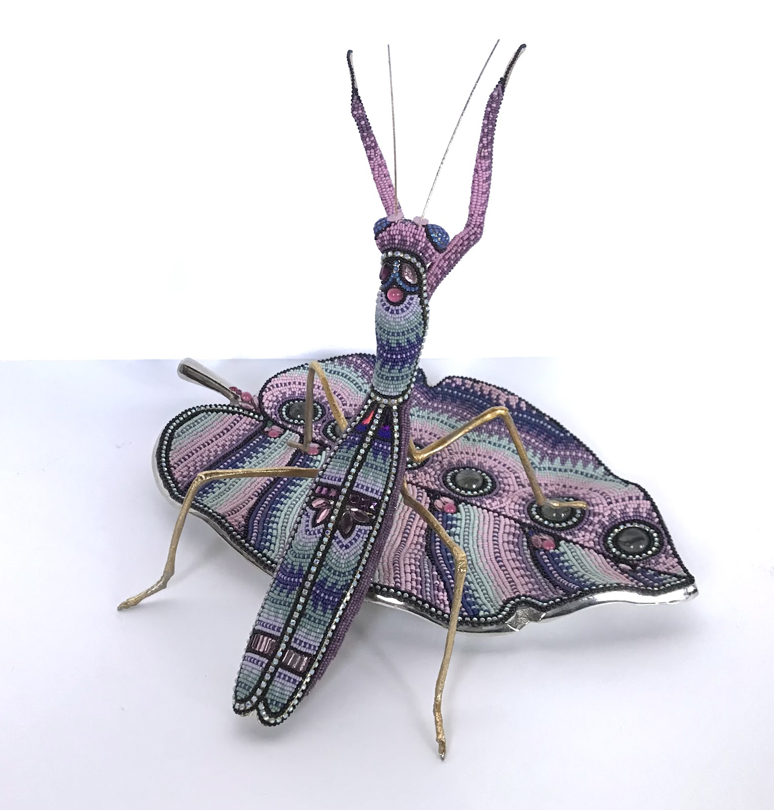 Czech glass seed beads, chain, vintage cabochons glued onto found substrate