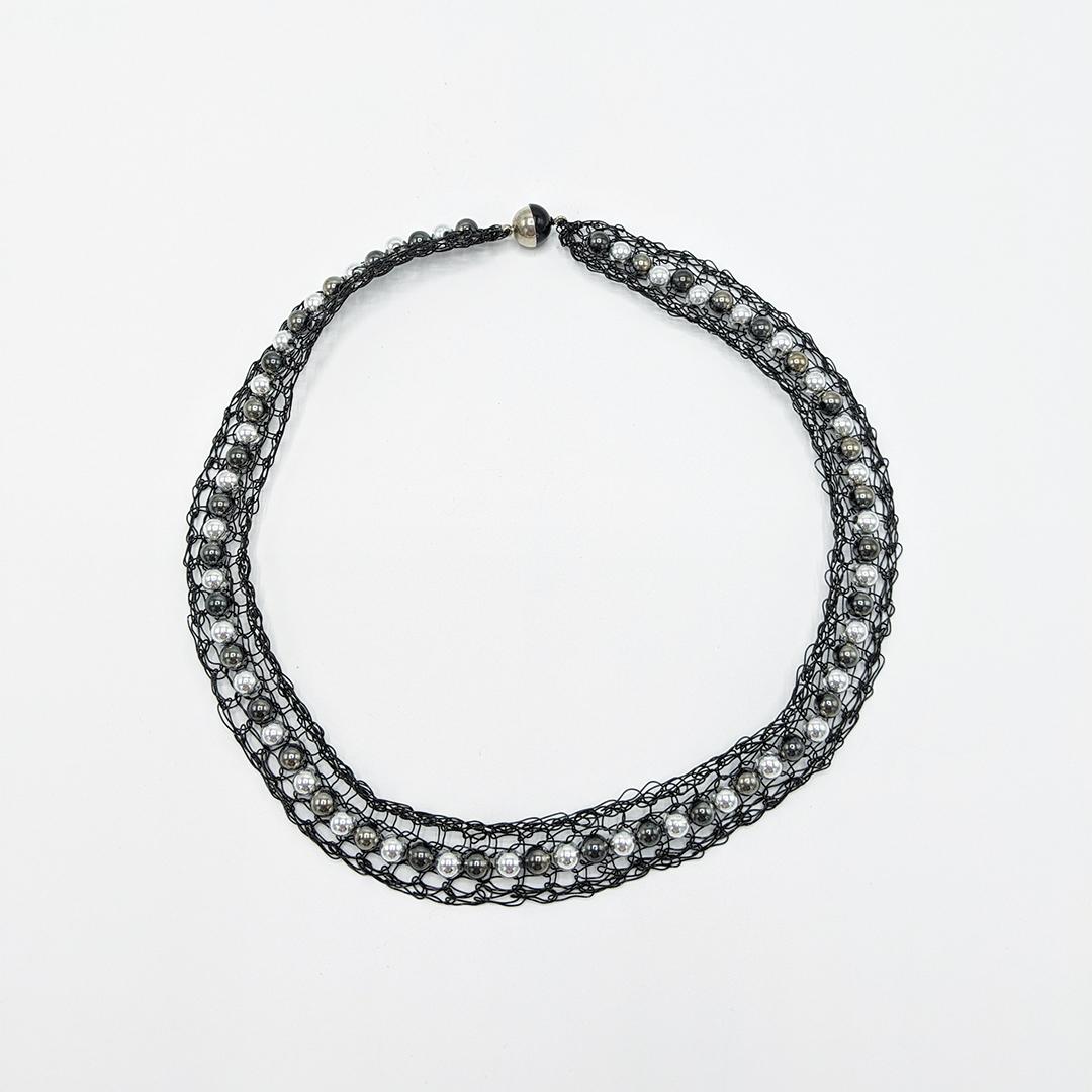 black main, white beads