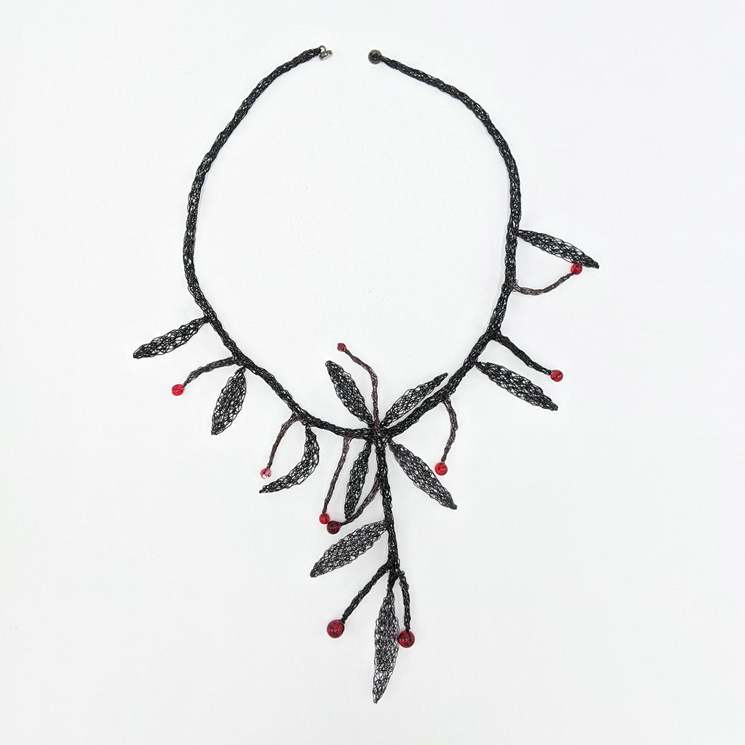 black leaves with red lass beads