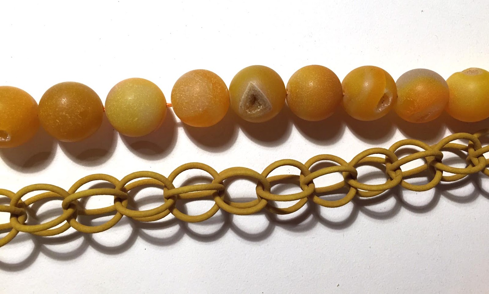 SLS Nylon, Hand dyed, Orange Druzy Quartz Beads
