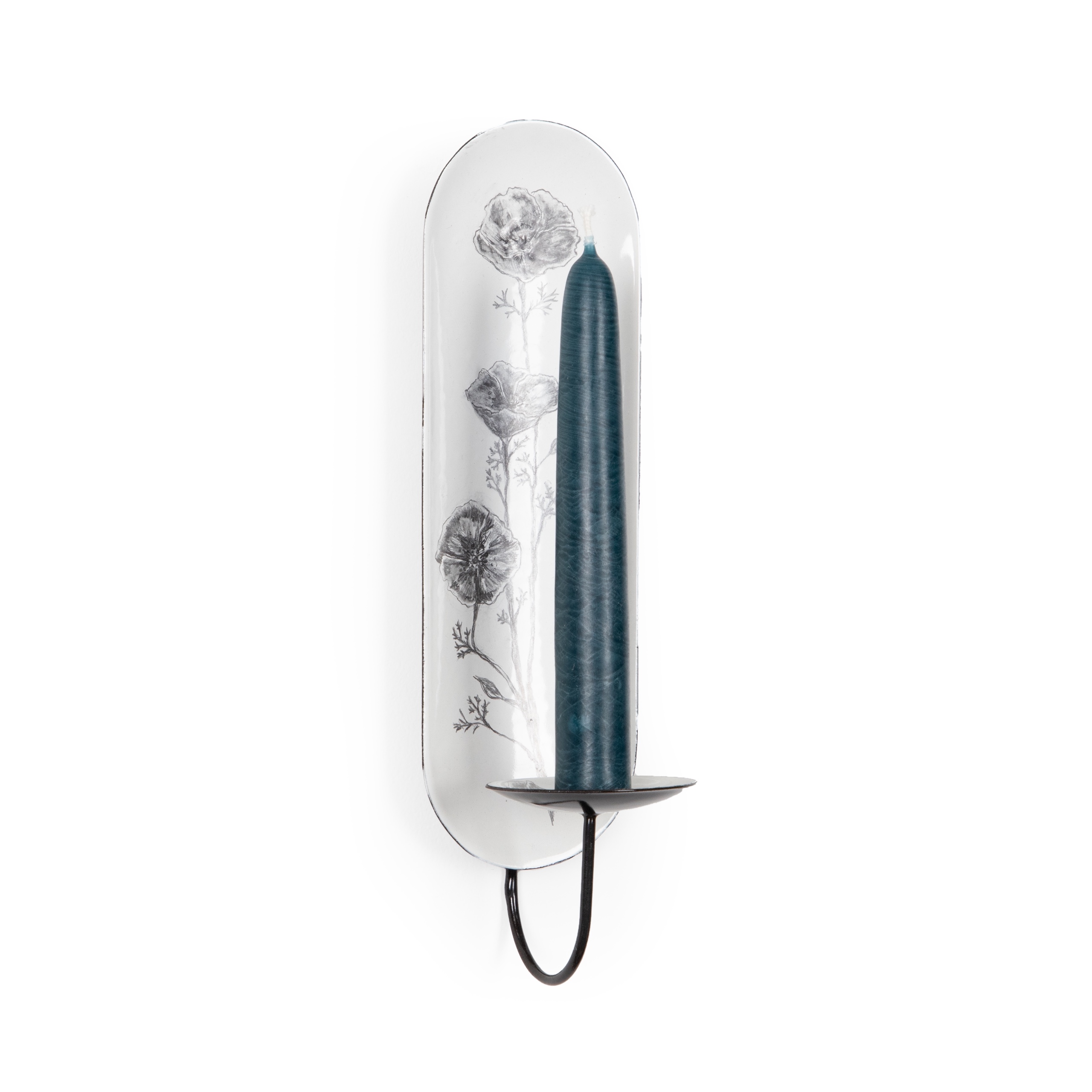 2024 | Single candelabra sconce with one of a kind graphite illustration | Fits 6" taper candle. 9.5” L x 2.5” W x 3” D
