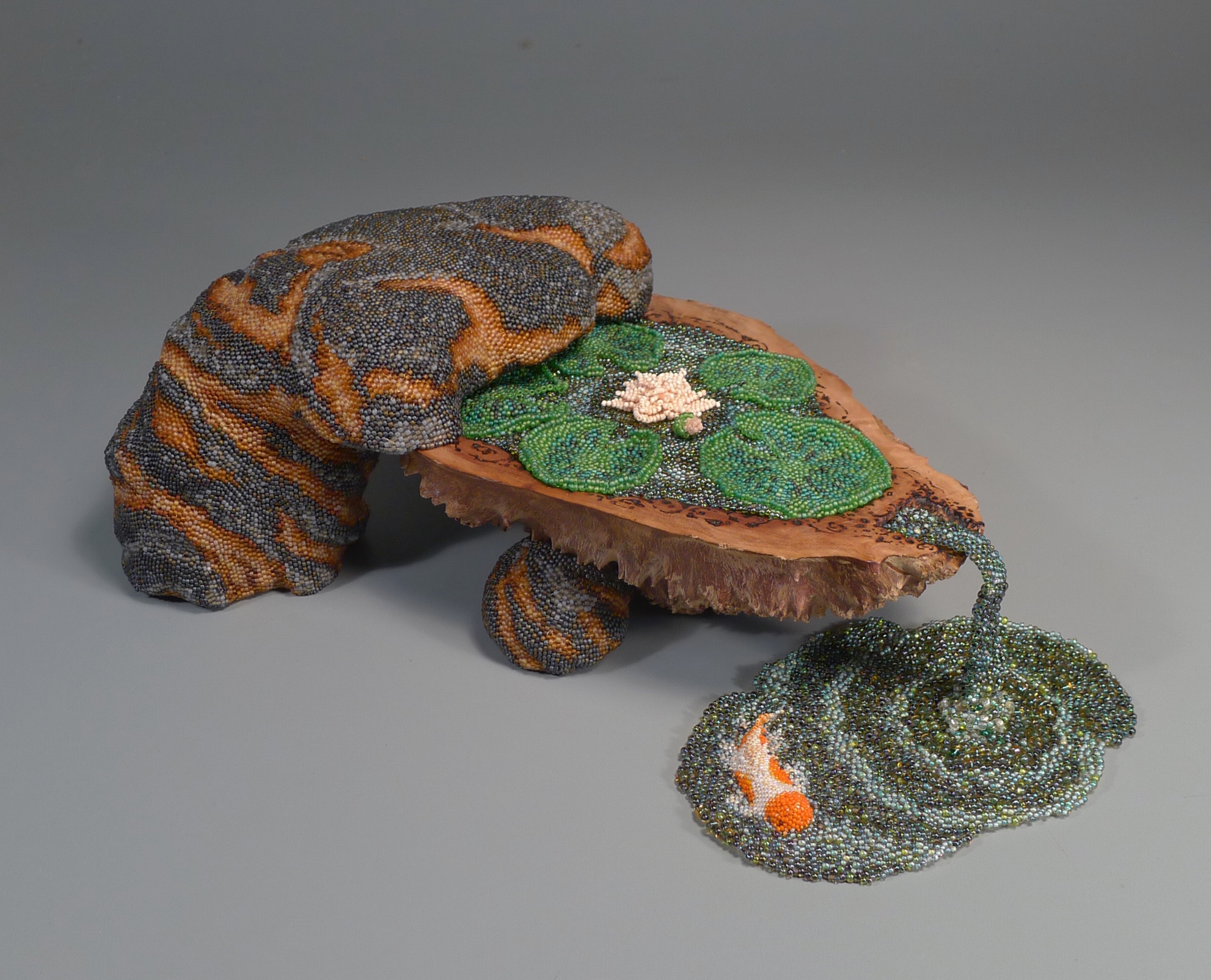 2016 | Australian brown mallee burl (carved & burned), maple (carved), glass seed beads (peyote stitch), thread | 4 3/8" x 15″ x 8 1/4"