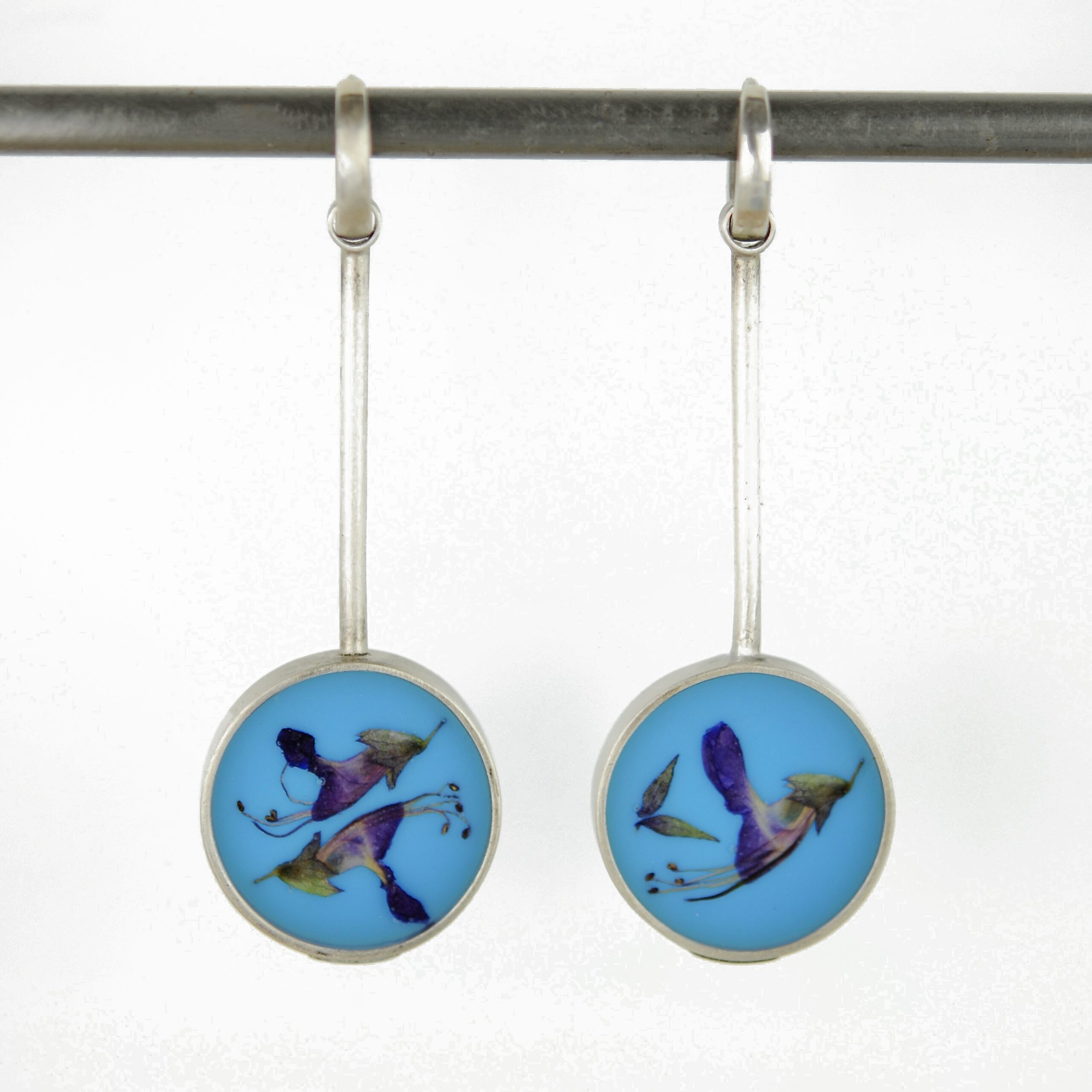 .8 x 2 x .2″, salsa flowers, resin, pigment, sterling silver