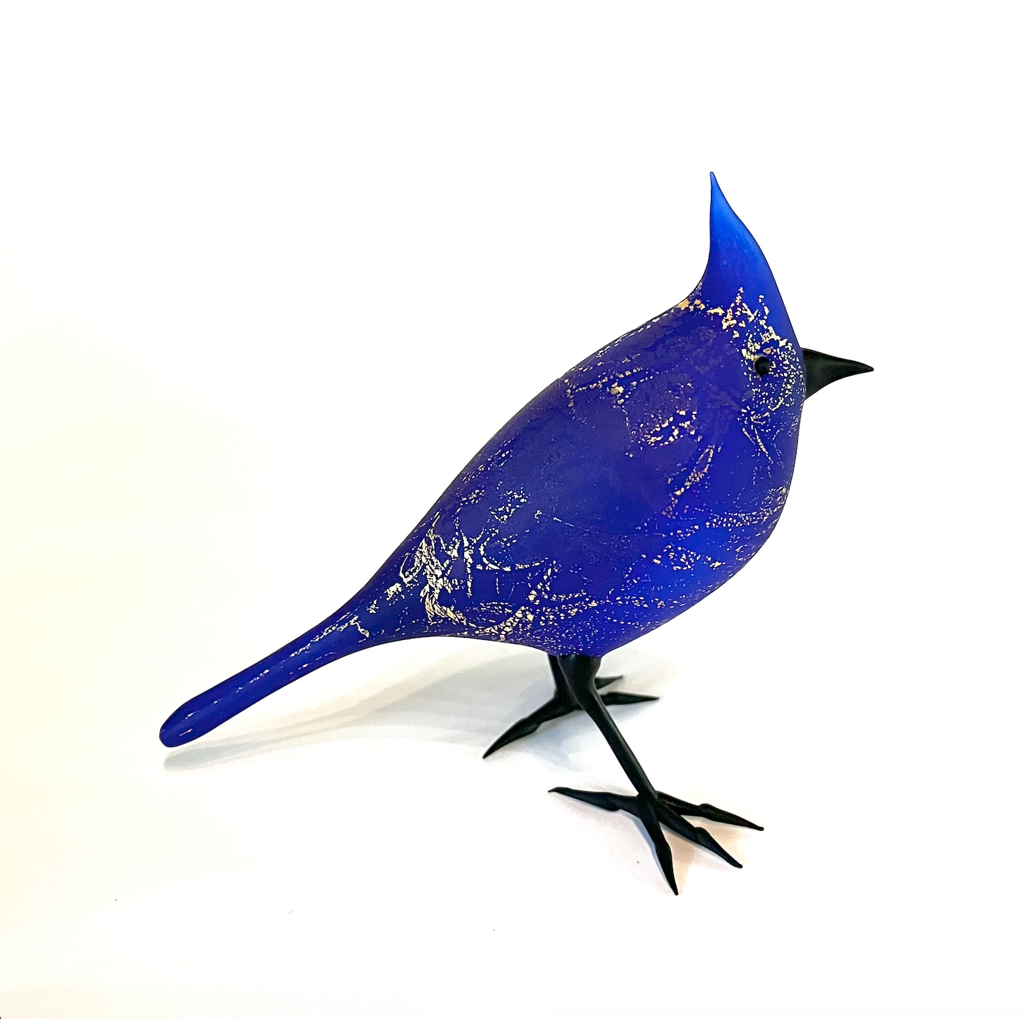dark cobalt, fused gold leaf & black. Flameworked glass & acid-etched