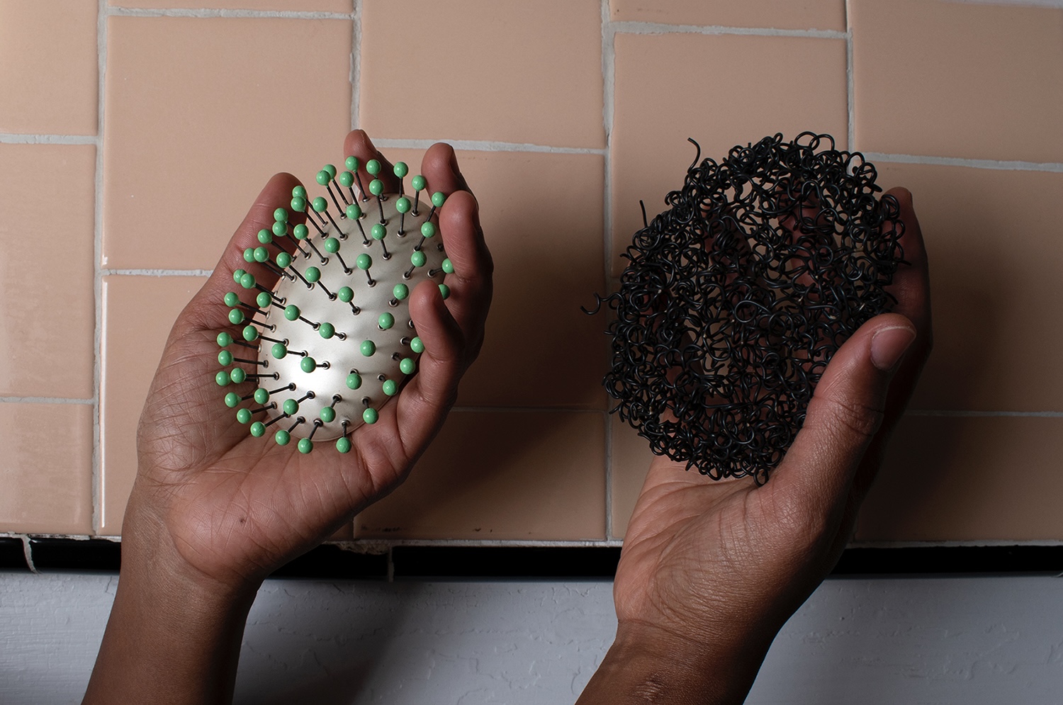 Brush 4" x 3" x 2", Hair ball 4 1/4" x 3 1/2" x 2 1/4"