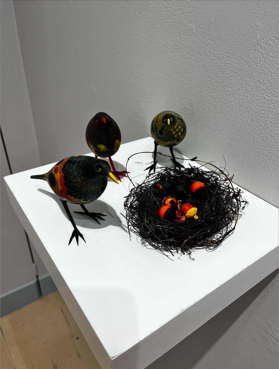 Set of birds with Nest. manipulated found next and painted, eight acors with two eggs