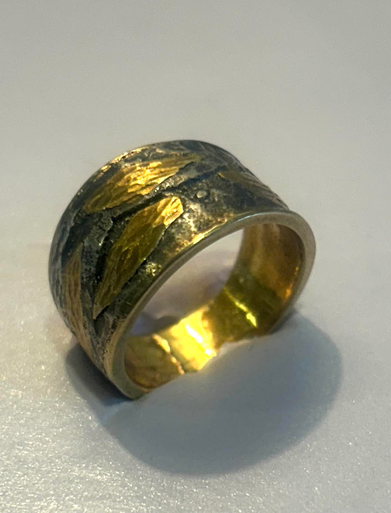 fused layers of 24, 22, 18k s/s framed in 18k pale yellow gold | Size 7.5