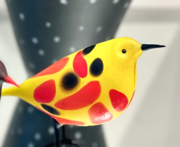 yellow, orange, red & black. Flameworked glass & acid-etched
