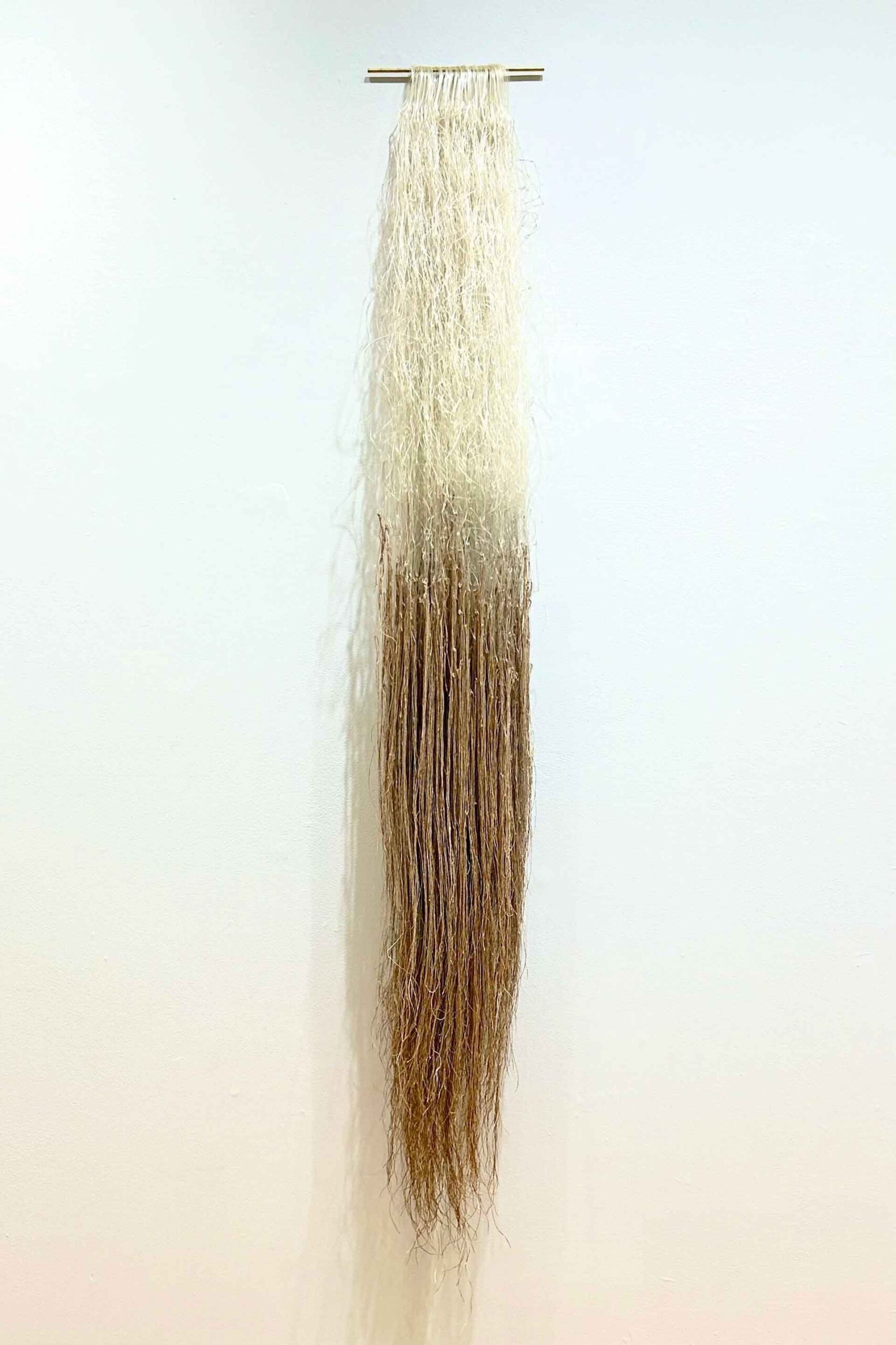 Knotted translucent monofilament, natural linen, brass, 72” x 10” x 8”